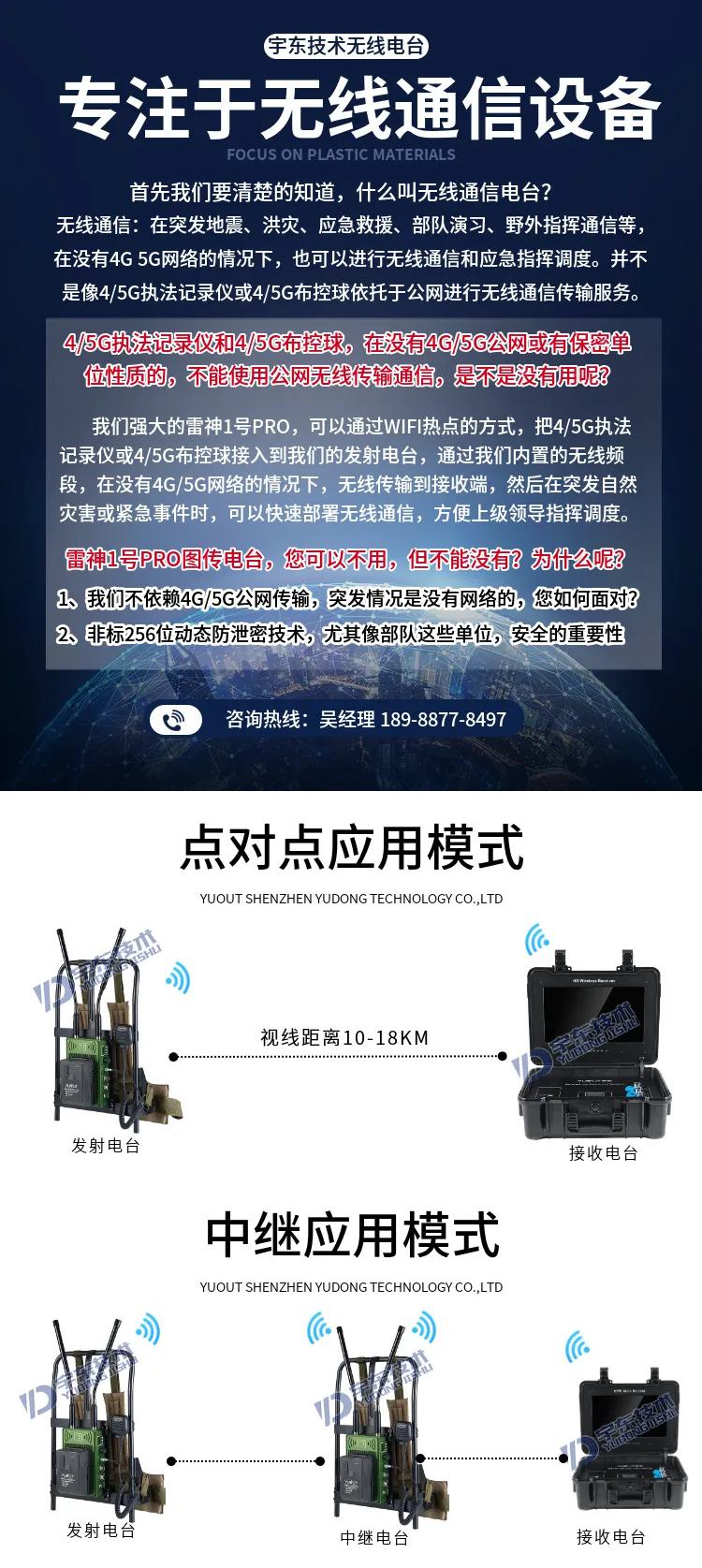 宇東技術(shù)雷神1號PRO背負式高清單兵無線圖傳電臺,是公司針對應(yīng)急救援指揮、部隊拉練演習、公安、反恐作戰(zhàn)、消防救援、邊防執(zhí)勤、海警海關(guān)巡檢、森林消防等,在突發(fā)重大事件,斷網(wǎng)斷電,通信中斷的情況下,現(xiàn)場工作人員通過宇東雷神1號PRO單兵無線圖傳電臺,可以和指揮部雙向語音通話對講,把現(xiàn)場采集的數(shù)據(jù)實時無線傳輸?shù)街笓]車/臨時指揮部大屏幕,讓指揮部領(lǐng)導(dǎo)對現(xiàn)場情況一目了然,節(jié)省了到達現(xiàn)場的時間,可快速做緊急指揮調(diào)度,最大限度的減少突發(fā)事件帶來的各種損失。